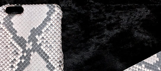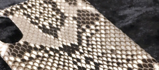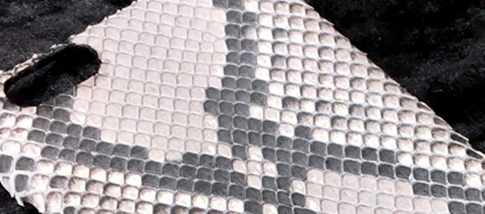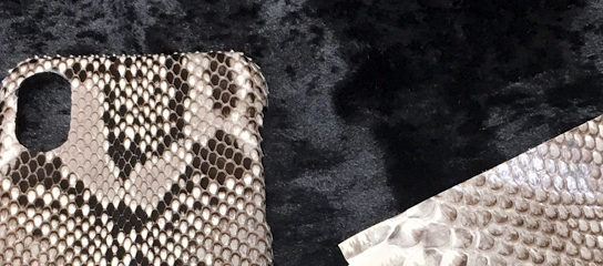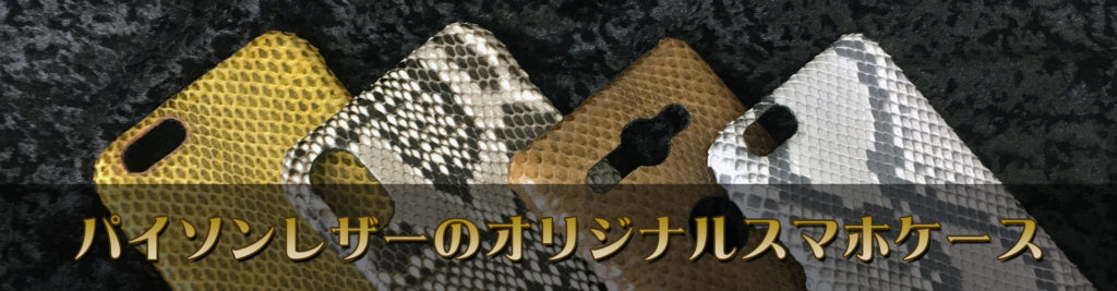 オリジナルレザーアイテムのしかく屋です。パイソンレザーを使ったスマートフ